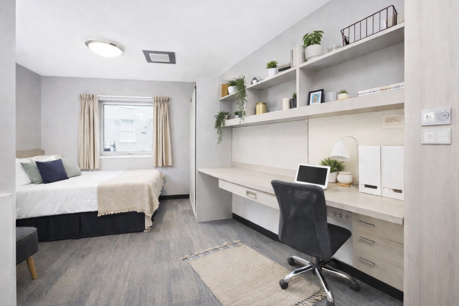 Every room is set up with a comfortable double bed, practical storage and plenty of natural light, so it feels easy to make it yours.